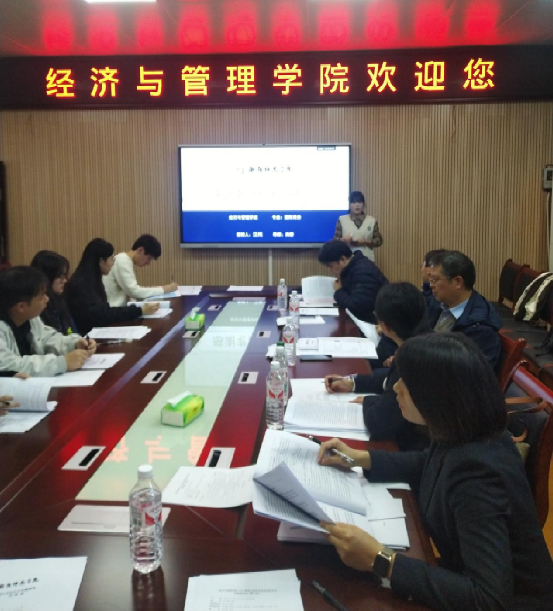 开题报告会第二组的评审组长为莫旋教授,评审组成员有屈瑜君教授、李昕宸副教授、刘鑫副教授、谢妮行长,开题秘书为张利军博士,同学们汇报的题目分别为“数字经济赋能农产品出口质量提升的机制与路径研究”、“新质生产力视角下农业服务贸易发展路径与机制研究”、“数字化水平对我国高新技术产品出口贸易的影响研究”、“中国与“一带一路”沿线国家粮食贸易韧性时空格局及其驱动机制研究”、“高标准数字贸易规则对于中国产业价值链的影响研究”“制度型开放与外商直接投资:基于跨境电商综试区和自由贸易区的实证研究”、“双碳”目标下FDI对绿色技术创新能力的影响及作用机制研究”。