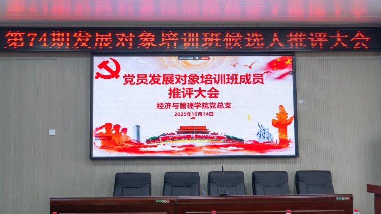 为从严从实做好党员发展与教育工作,切实把政治过硬、综合素质突出的优秀青年吸纳到党组织中来,我院于2025年10月14日在仁智楼C604召开“第74期发展对象培训班候选人推评大会”,此次会议由学生党建中心主任刘宇琴主持,太阳网集团tcy8722党总支副书记周思敏、学工办副主任兼分团委书记谢媛、经济学专业学生党支部书记陈志鹏、国贸与电商学生党支部书记张瑶、财务管理专业学生党支部书记廖航瑜、全体学生党员、学生代表以及第74期发展对象培训班候选人参会。