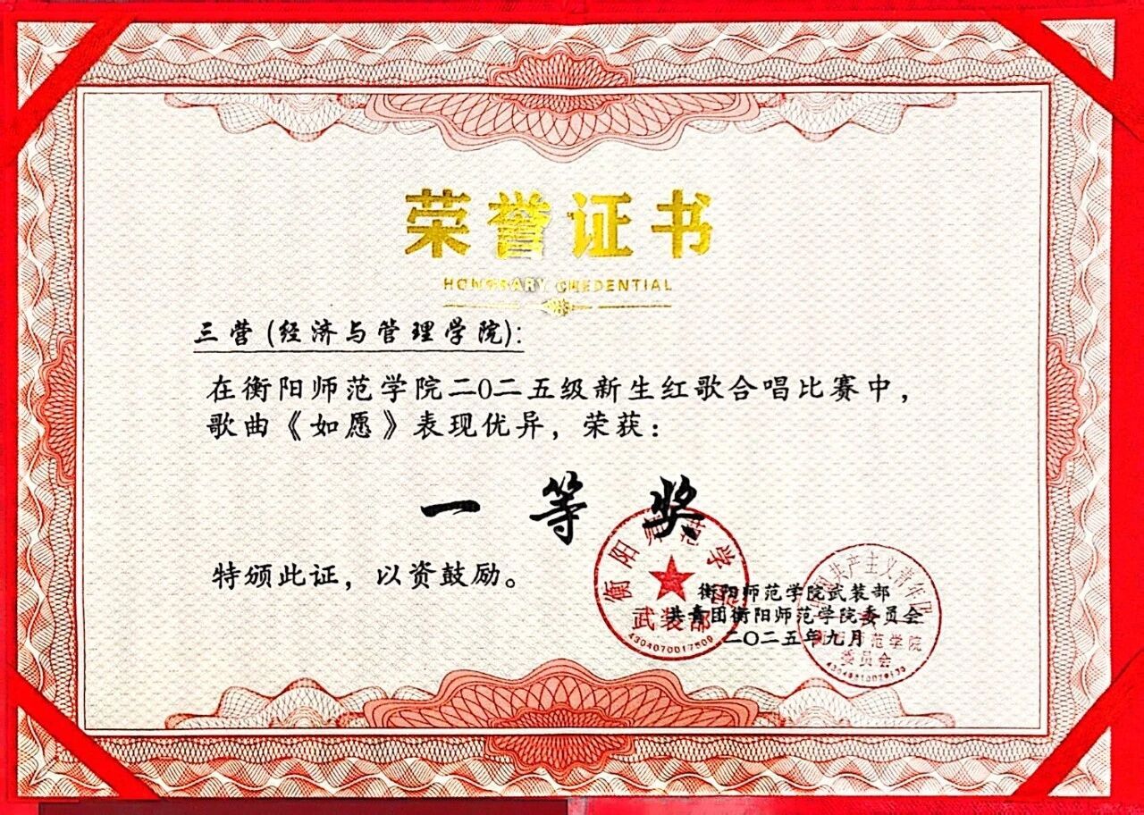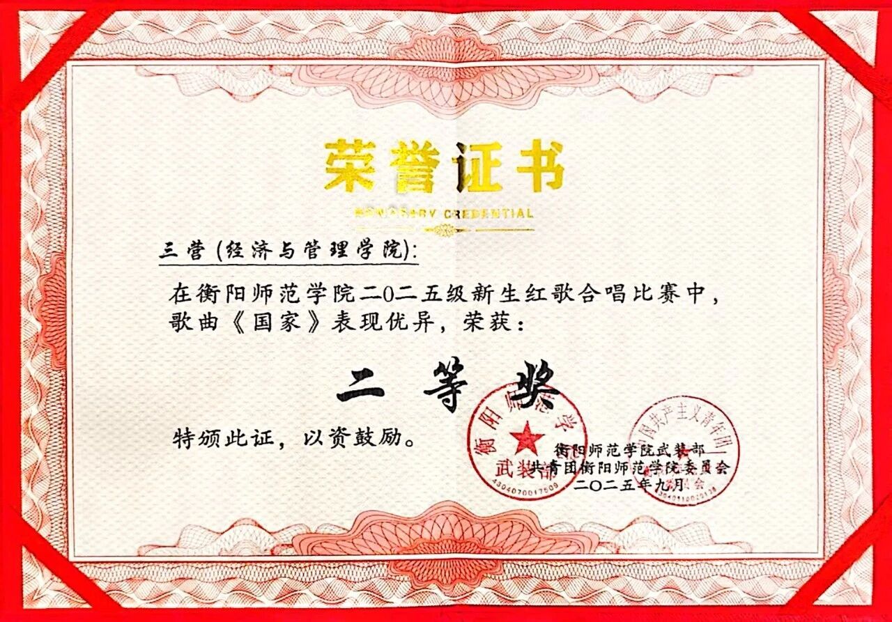 在此次军训期间,我院荣获2025级学生内务评比先进单位,2025级“军歌嘹亮,青春飞扬”军训合唱比赛一等奖、二等奖,2025级学生军训队列评比二等奖、三等奖。