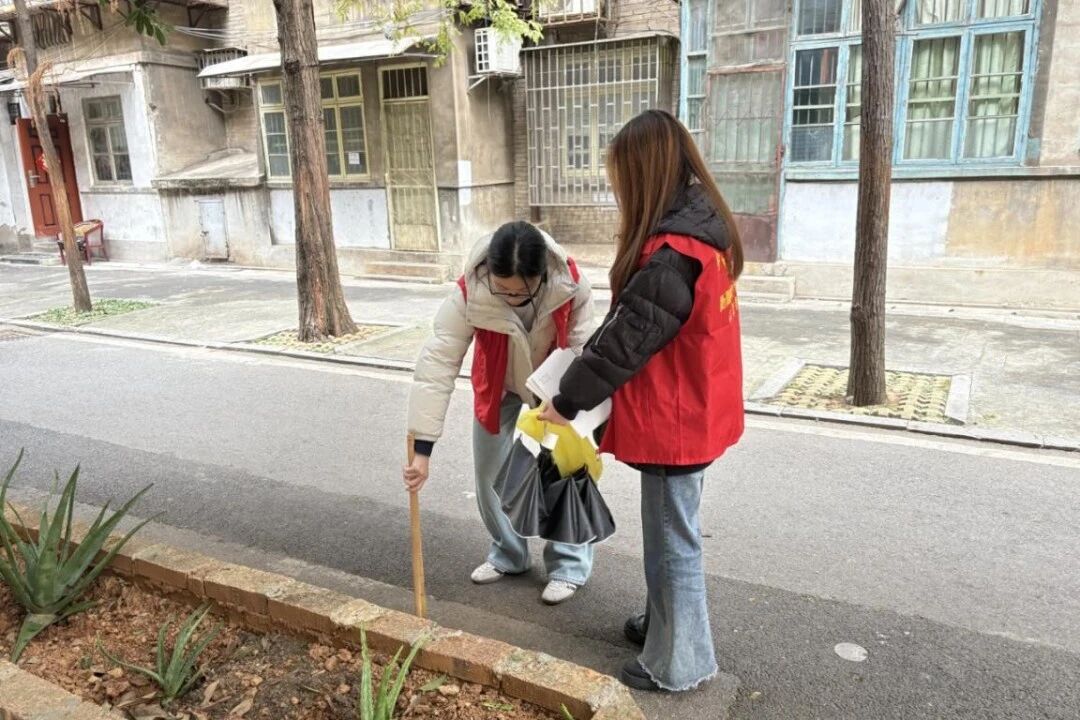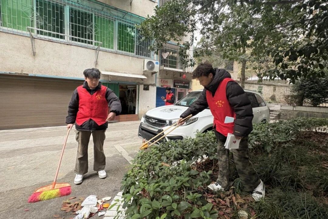 活动现场,志愿者们手持工具,有序前往社区主干道、绿化带、公共活动区。从路面纸屑到墙角积尘,从落叶杂草到隐蔽垃圾,大家细致排查每一处卫生死角,默契分工,相互配合。志愿者们的青春身影活跃在社区的各个角落。