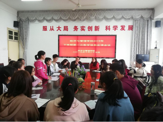 会议伊始,屈院长向各班学习委员安排了“学生评教与师生互动”信息即时反馈表的工作任务,要求各班学委秉着公正的态度认真评价。而后,屈院长强调教学反馈会议的主要目的是想了解老师授课情况和学生的到课情况。
