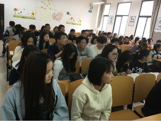 学生们和老师们正在认真听演讲