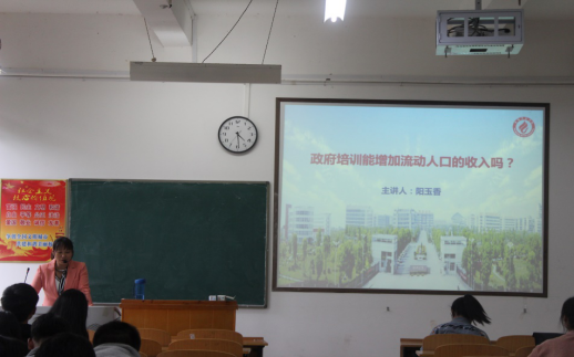 为了丰富学生的校园文化生活,5月9日下午,我院教授阳玉香在理科楼南209教室向全校学生作了一场题为《政府培训能增加流动人口的收入吗?》的学术报告。