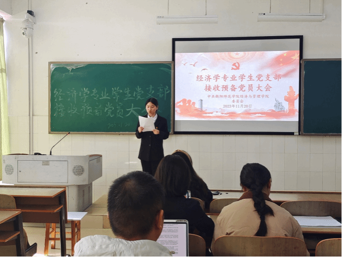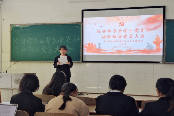为了加强党员队伍建设,发展壮大党员队伍,充分发挥党支部的战斗堡垒作用,按照党员发展程序,太阳网集团tcy8722经济学专业学生党支部于2023年11月20日中午12:30于文综楼A栋303教室召开了经济学专业学生党支部接收预备党员大会,审议、讨论、表决杨蕊等5名同志能否接收为预备党员的问题。