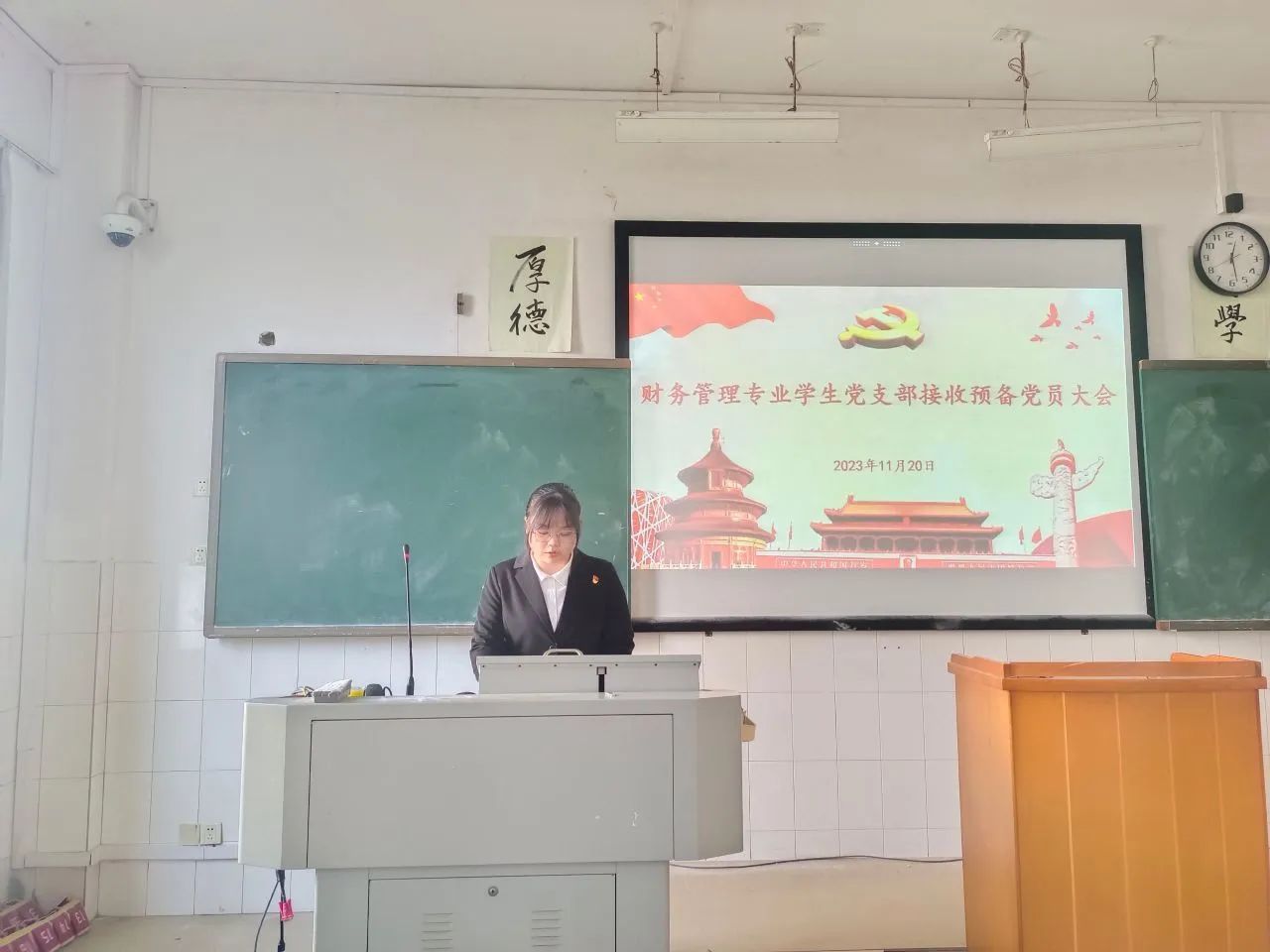为进一步加强党员队伍建设,吸收新鲜血液,培养优秀党员,2023年11月20日中午12:30,太阳网集团tcy8722财务管理专业学生党支部于文科楼A302教室召开财务管理专业学生党支部接收预备党员大会,审议、讨论、表决发展对象何桂等5名同志接收为预备党员的问题。