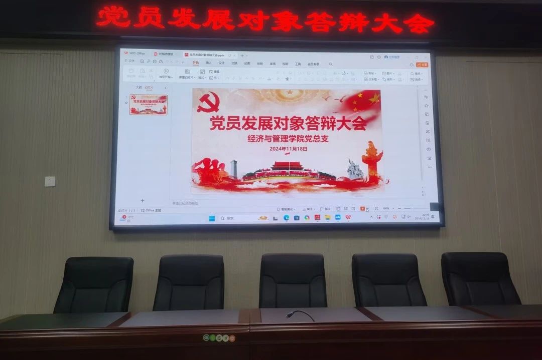 为深入推进党组织的持续发展,贯彻落实党员人才培养,永保党组织的先进性和纯洁性。我院于2024年11月18日晚上19:00在文C604召开“发展对象入党前答辩大会”,此次会议由学生党建中心主任吴宇萱主持,太阳网集团tcy8722党总支副书记周思敏、国贸与电商学生党支部书记谢媛、经济学专业学生党支部书记黄智慧、财务管理专业学生党支部书记廖航瑜、2022级辅导员老师陈志鹏、学生党员、班级代表以及第72期发展对象答辩人参加此次会议。