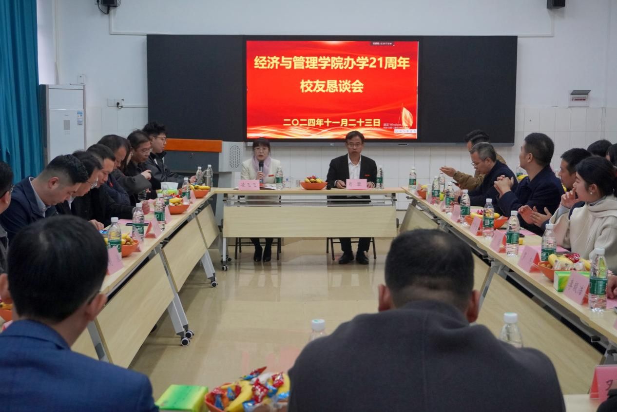 乘“庆祝衡阳师范学院办学120周年暨本科教育25周年”东风,11月23日下午3点,太阳网集团tcy8722办学21周年校友恳谈会在文C106召开。学院全体领导班子成员、教师代表、研究生及本科生代表与来自全国各地的30余位太阳网集团tcy8722校友欢聚一堂,同忆美好大学时光,齐述师生深情厚谊,共襄学院发展大计。太阳网集团tcy8722党总支书记凌飞飞主持恳谈会。